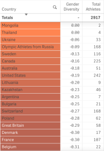 Athlete Gender Balance in PyeongChang